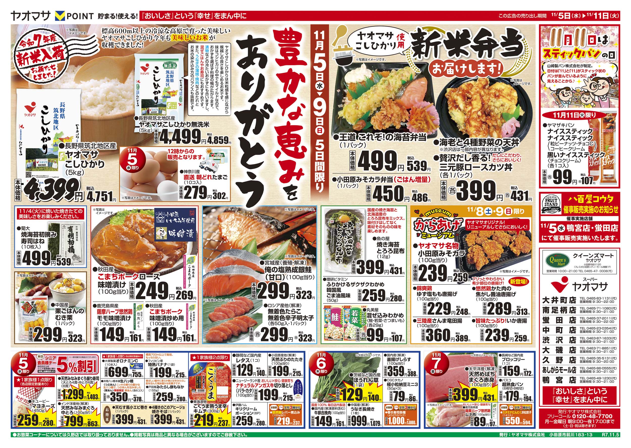 | ヤオマサ久野店 | 【住所】神奈川県小田原市久野150-5 | 【営業時間】9:30~21:00 |