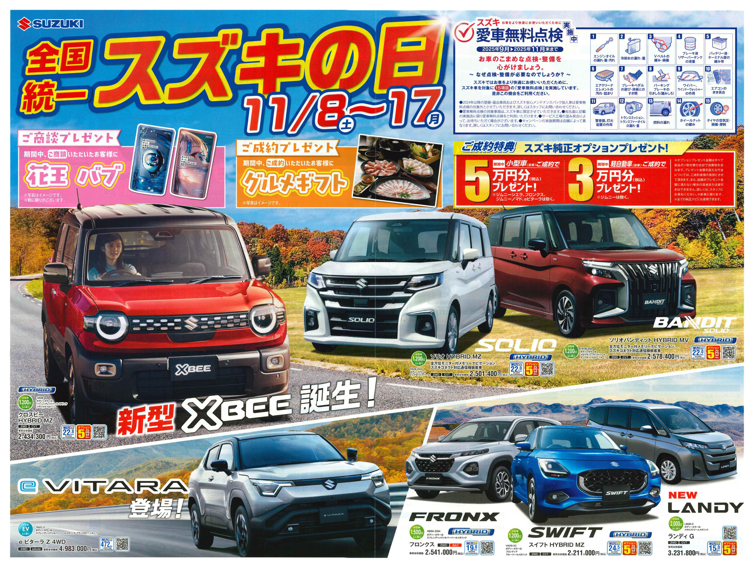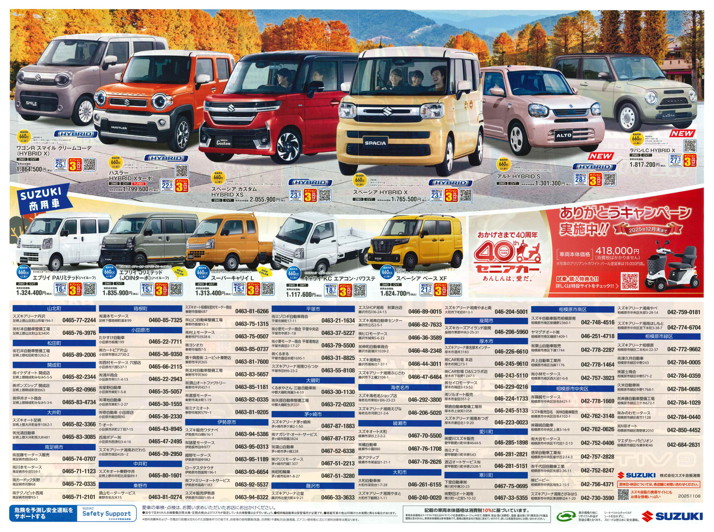 平塚市 スズキ自販湘南 スズキアリーナ湘南ひらつか 新車といっしょにメンテナンスパックがお得です。 ネットチラシ クチコミを見る・投稿する ネットチラシ 広告有効期限:2025.11.08~2025.11.17 その他のネットチラシ 周辺のチラシを見る 周辺情報 グルメ ショッピング 車・バイク 住宅 暮らし 趣味・レジャー 美容・健康 周辺情報はありません このお店のTOPページへ 0463-55-8108 twitter Facebook Google+