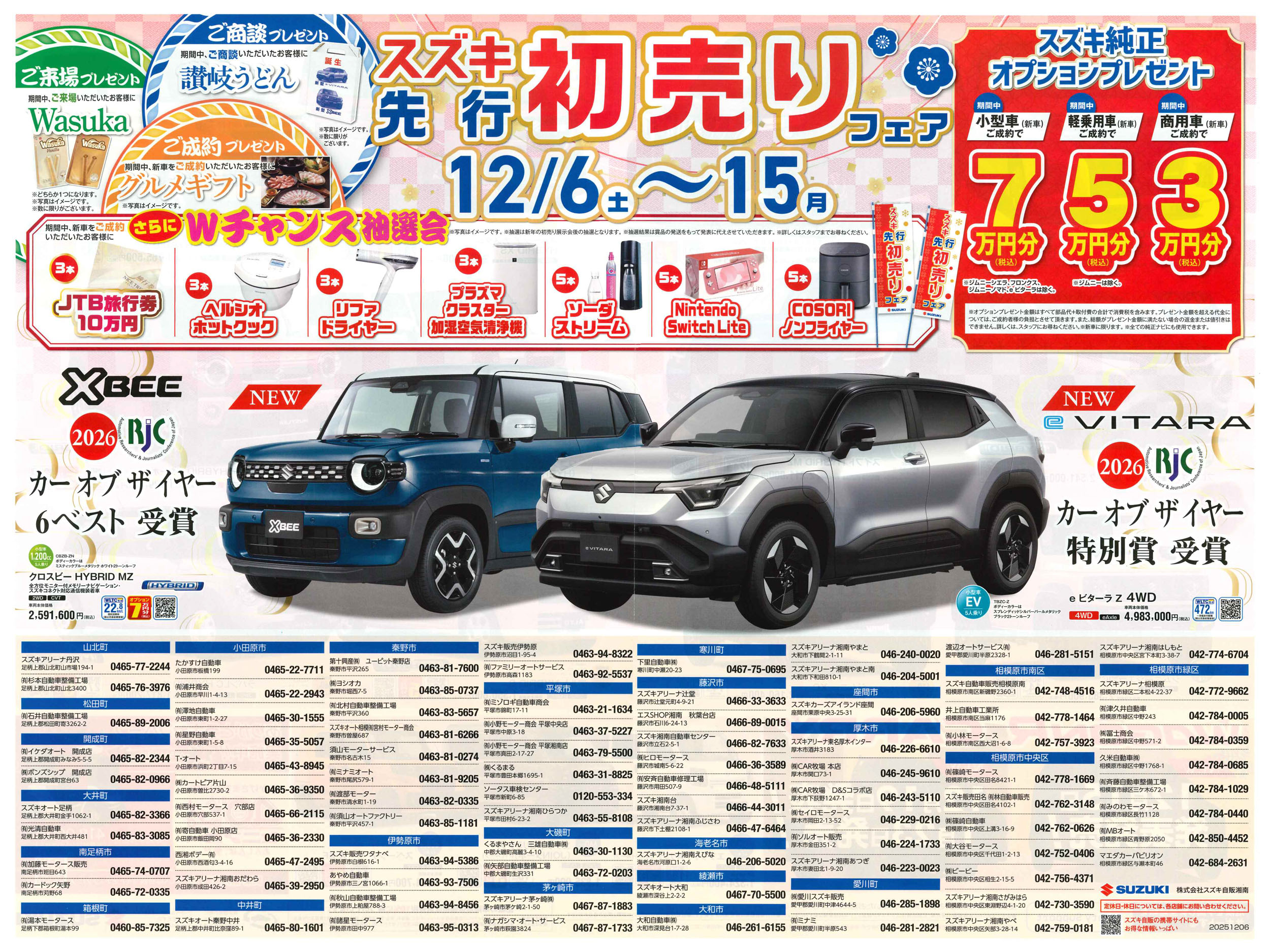 小田原市 スズキ自販湘南 スズキアリーナ湘南おだわら お車のことなら何でもお気軽にご相談下さい。 ネットチラシ クチコミを見る・投稿する ネットチラシ 広告有効期限:2025.12.06~2025.12.15 その他のネットチラシ 周辺のチラシを見る 周辺情報 グルメ ショッピング 車・バイク 住宅 暮らし 趣味・レジャー 美容・健康 周辺情報はありません このお店のTOPページへ 0465-39-2950 twitter Facebook Google+