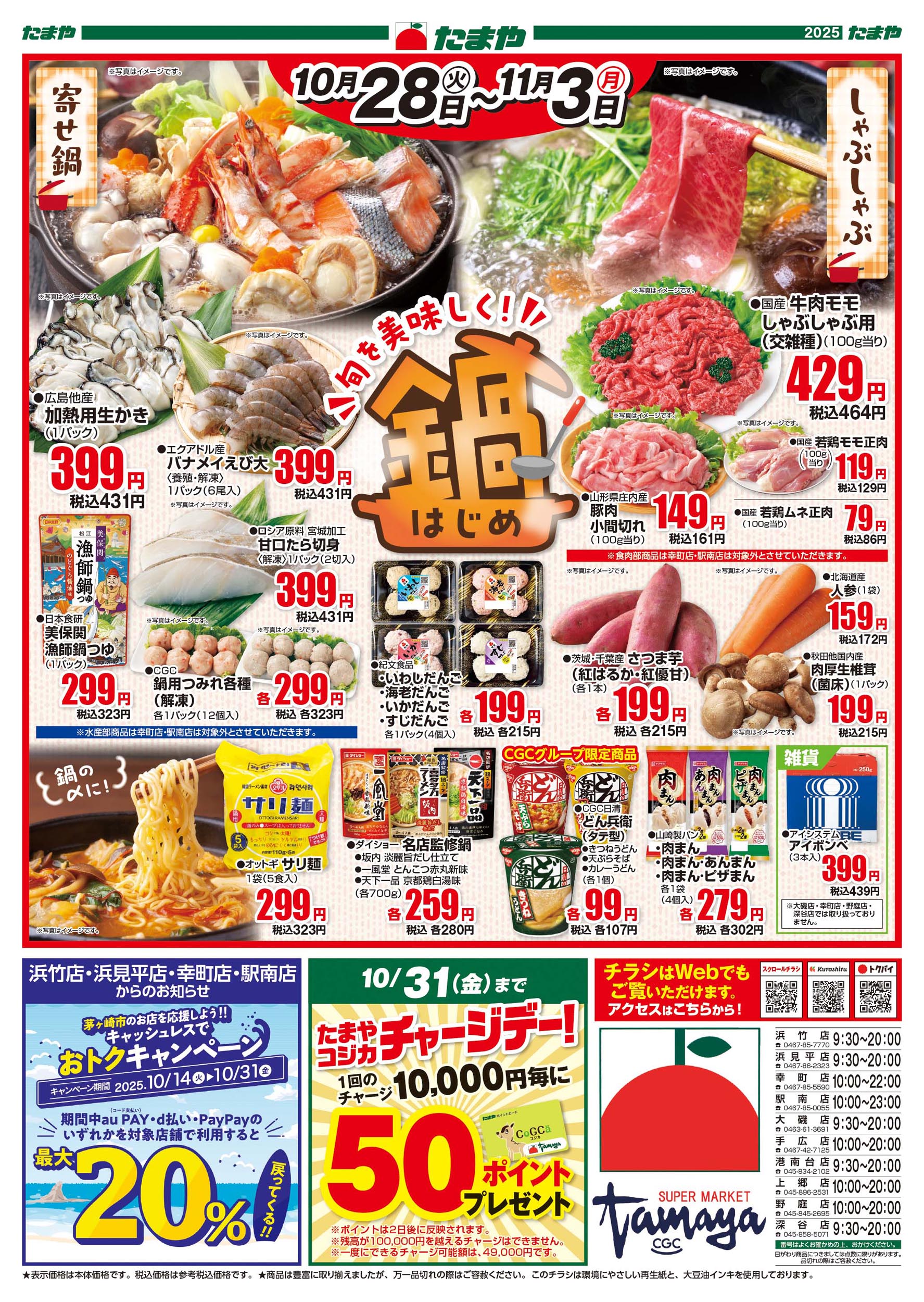 中郡大磯町 スーパーたまや 大磯店 生鮮食品、お惣菜、お酒、生活用品、豊富な品揃え。地域一番店となるべくサービス、価格に常に挑戦しております。 ネットチラシ クチコミを見る・投稿する ネットチラシ 広告有効期限:2025.10.28~2025.11.03 その他のネットチラシ 周辺のチラシを見る 周辺情報 グルメ ショッピング 車・バイク 住宅 暮らし 趣味・レジャー 美容・健康 周辺情報はありません このお店のTOPページへ 0463-61-3691 twitter Facebook Google+