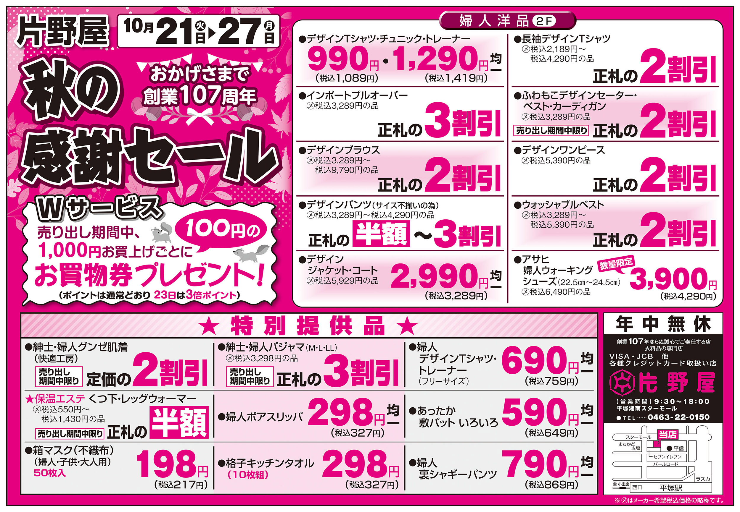 平塚市 片野屋 まごころでご奉仕の店。創業大正8年。 ネットチラシ クチコミを見る・投稿する ネットチラシ 広告有効期限:2025.10.21~2025.10.27 その他のネットチラシ 周辺のチラシを見る 周辺情報 グルメ ショッピング 車・バイク 住宅 暮らし 趣味・レジャー 美容・健康 周辺情報はありません このお店のTOPページへ 0463-22-0150 twitter Facebook Google+
