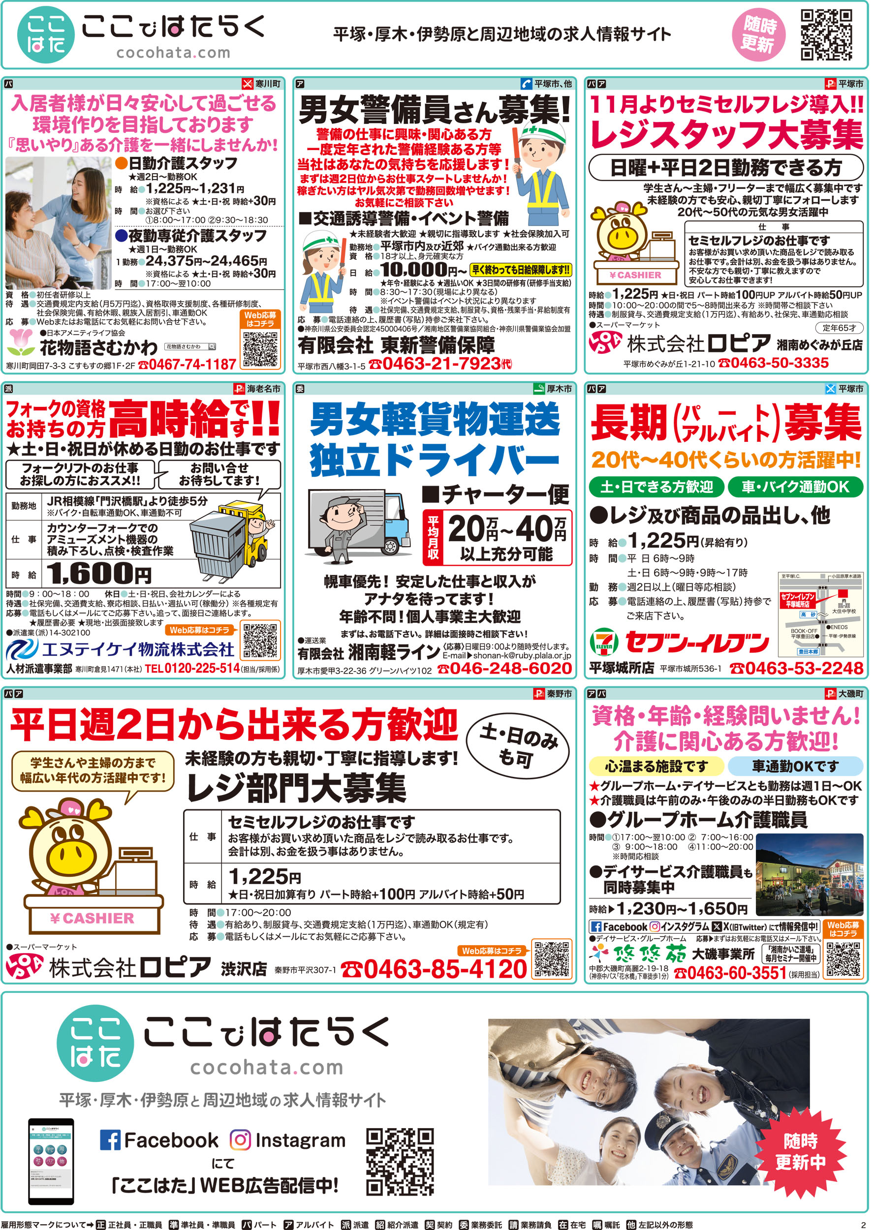 平塚市 アドワン 湘南平塚~秦野版 新聞折込チラシの無料求人情報誌 チラシ クチコミを見る・投稿する チラシ 広告有効期限:2025.12.07~2025.12.13 その他のネットチラシ 周辺のチラシを見る このお店のTOPページへ twitter Facebook Google+