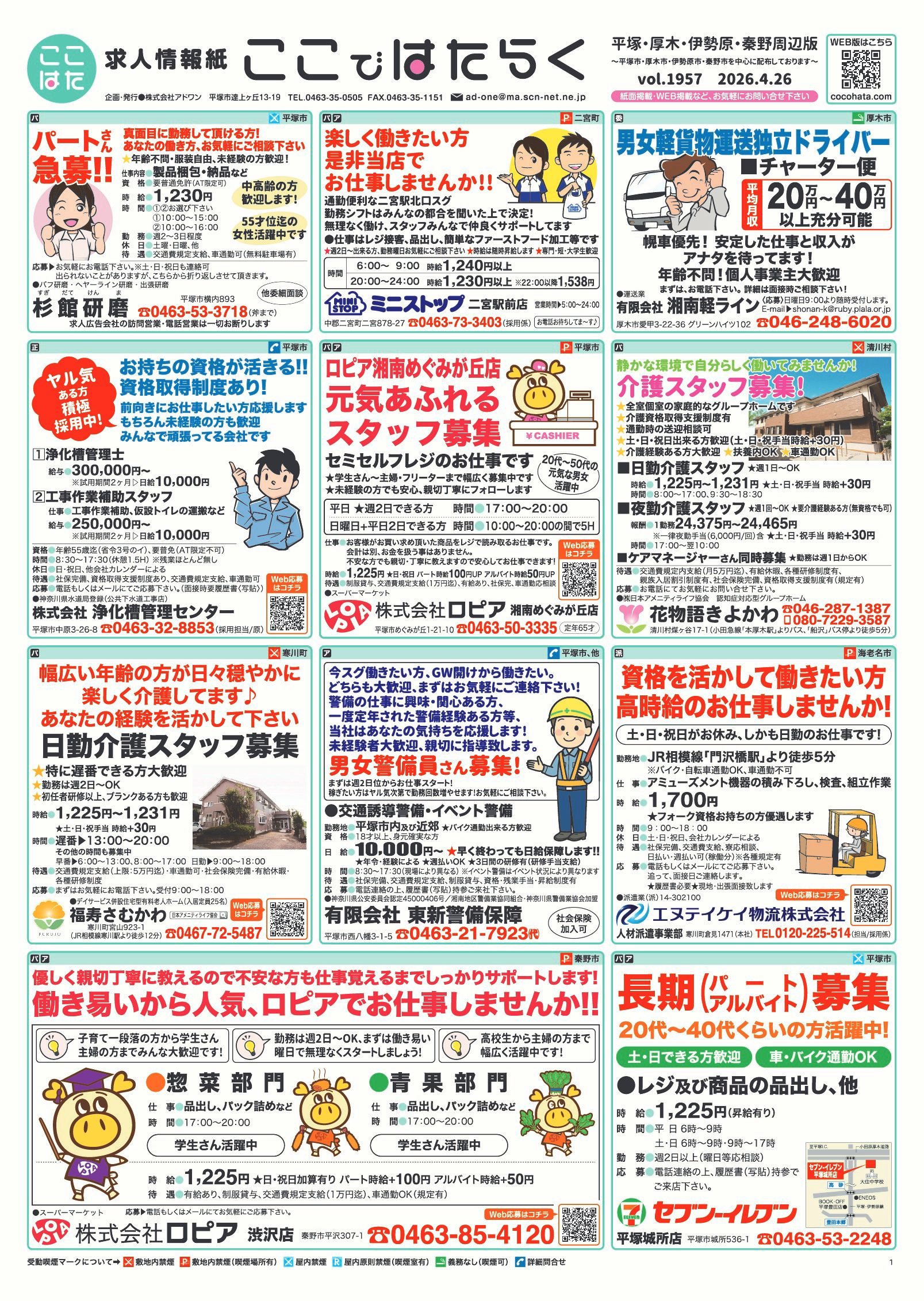 平塚市 アドワン 湘南平塚~秦野版 新聞折込チラシの無料求人情報誌 チラシ クチコミを見る・投稿する チラシ 広告有効期限:2026.04.26~2026.05.02 その他のネットチラシ 周辺のチラシを見る このお店のTOPページへ twitter Facebook Google+