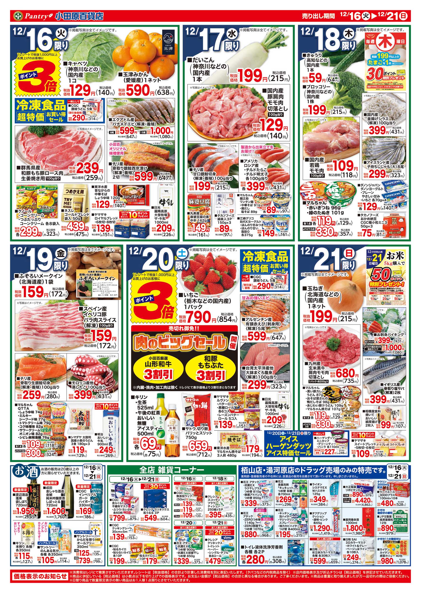 小田原市 小田原百貨店 大雄山店 地元名産の野菜、新鮮な商品を取り揃えております。 チラシ クチコミを見る・投稿する チラシ 広告有効期限:2025.12.16~2025.12.21 その他のネットチラシ 広告有効期限 2025/12/20~2025/12/22 周辺のチラシを見る 周辺情報 グルメ ショッピング 車・バイク 住宅 暮らし 趣味・レジャー 美容・健康 周辺情報はありません このお店のTOPページへ 0465-72-3611 twitter Facebook Google+