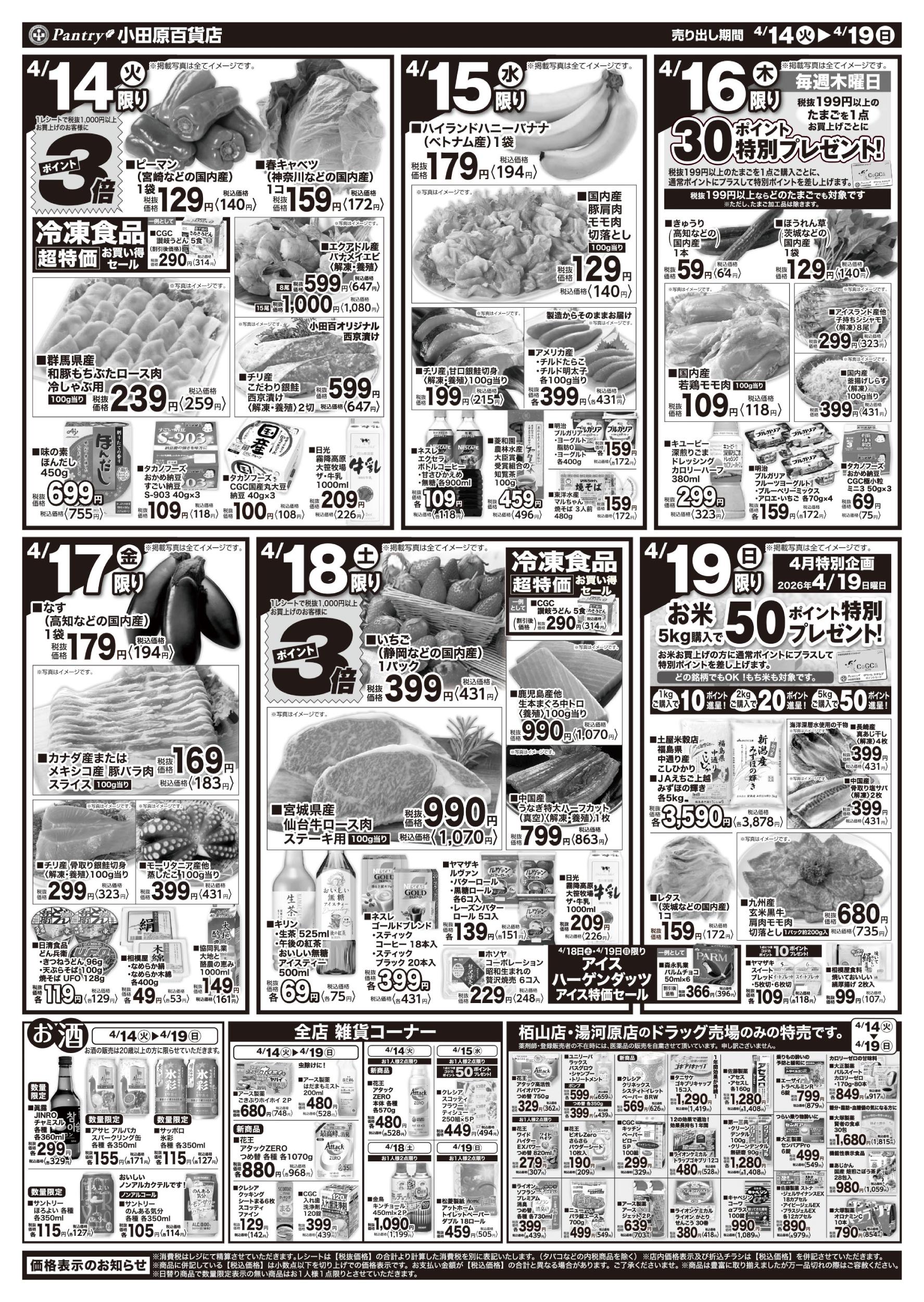 小田原市 小田原百貨店 栢山店 地元名産の野菜、新鮮な商品を取り揃えております。 ネットチラシ ネットチラシ 広告有効期限:2026.04.14~2026.04.19 その他のネットチラシ 周辺のチラシを見る 周辺情報 グルメ ショッピング 車・バイク 住宅 暮らし 趣味・レジャー 美容・健康 周辺情報はありません このお店のTOPページへ 0465-36-8566 twitter Facebook Google+