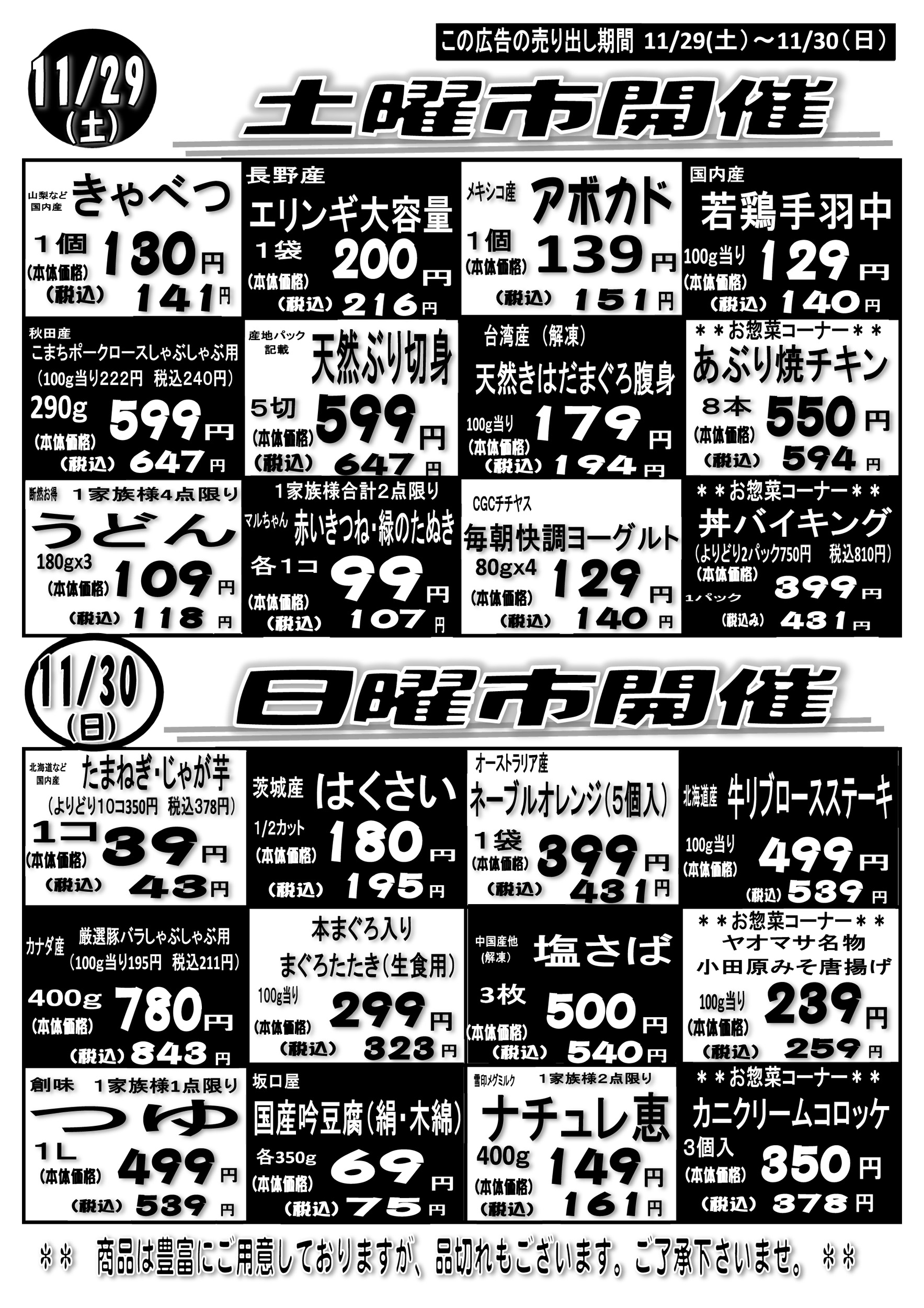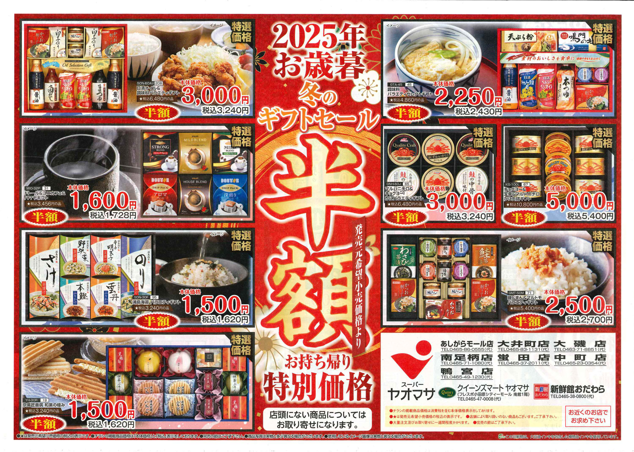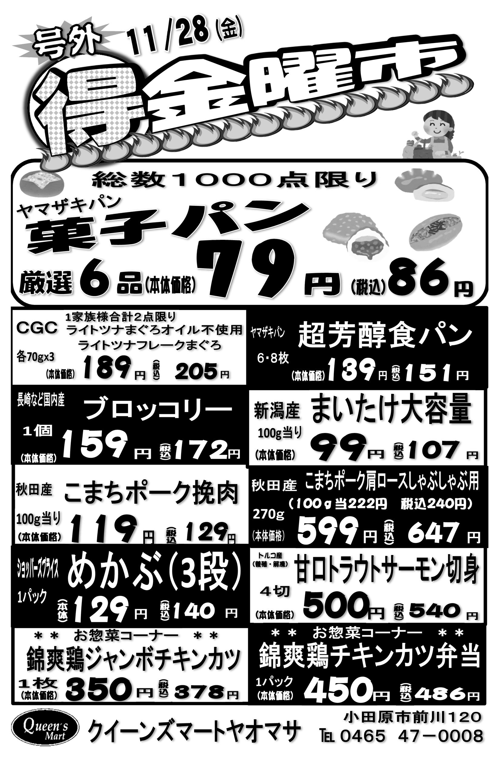 小田原市 クイーンズマート・ヤオマサ ヤオマサグループは、地域社会に密着し食文化を中心とした豊かな楽しい生活を地域の皆さまに提供します!お得で嬉しいイベントも満載!! ピックアップニュース ネットチラシ 料金・サービス クチコミを見る・投稿する もっと写真を見る ネットチラシ 広告有効期限:2025.11.28~2025.11.30 その他のネットチラシ 広告有効期限 2025/11/25~2025/12/02 広告有効期限 2025/11/24~2025/11/30 周辺のチラシを見る 周辺情報 グルメ ショッピング 車・バイク 住宅 暮らし 趣味・レジャー 美容・健康 周辺情報はありません このお店のTOPページへ 0465-47-0008 twitter Facebook Google+