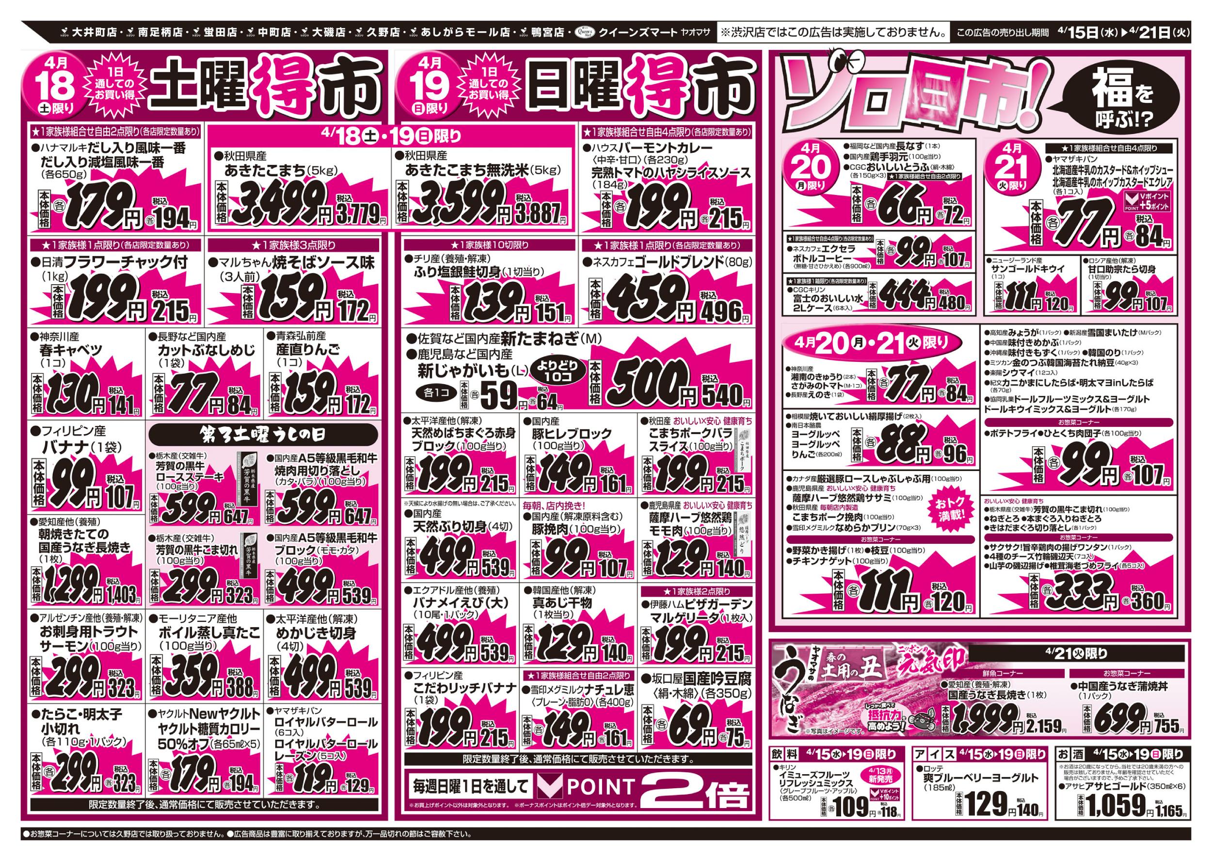 小田原市 クイーンズマート・ヤオマサ ヤオマサグループは、地域社会に密着し食文化を中心とした豊かな楽しい生活を地域の皆さまに提供します!お得で嬉しいイベントも満載!! ピックアップニュース ネットチラシ 料金・サービス クチコミを見る・投稿する もっと写真を見る ネットチラシ 広告有効期限:2026.04.15~2026.04.21 その他のネットチラシ 広告有効期限 2026/04/17~2026/04/19 周辺のチラシを見る 周辺情報 グルメ ショッピング 車・バイク 住宅 暮らし 趣味・レジャー 美容・健康 周辺情報はありません このお店のTOPページへ 0465-47-0008 twitter Facebook Google+