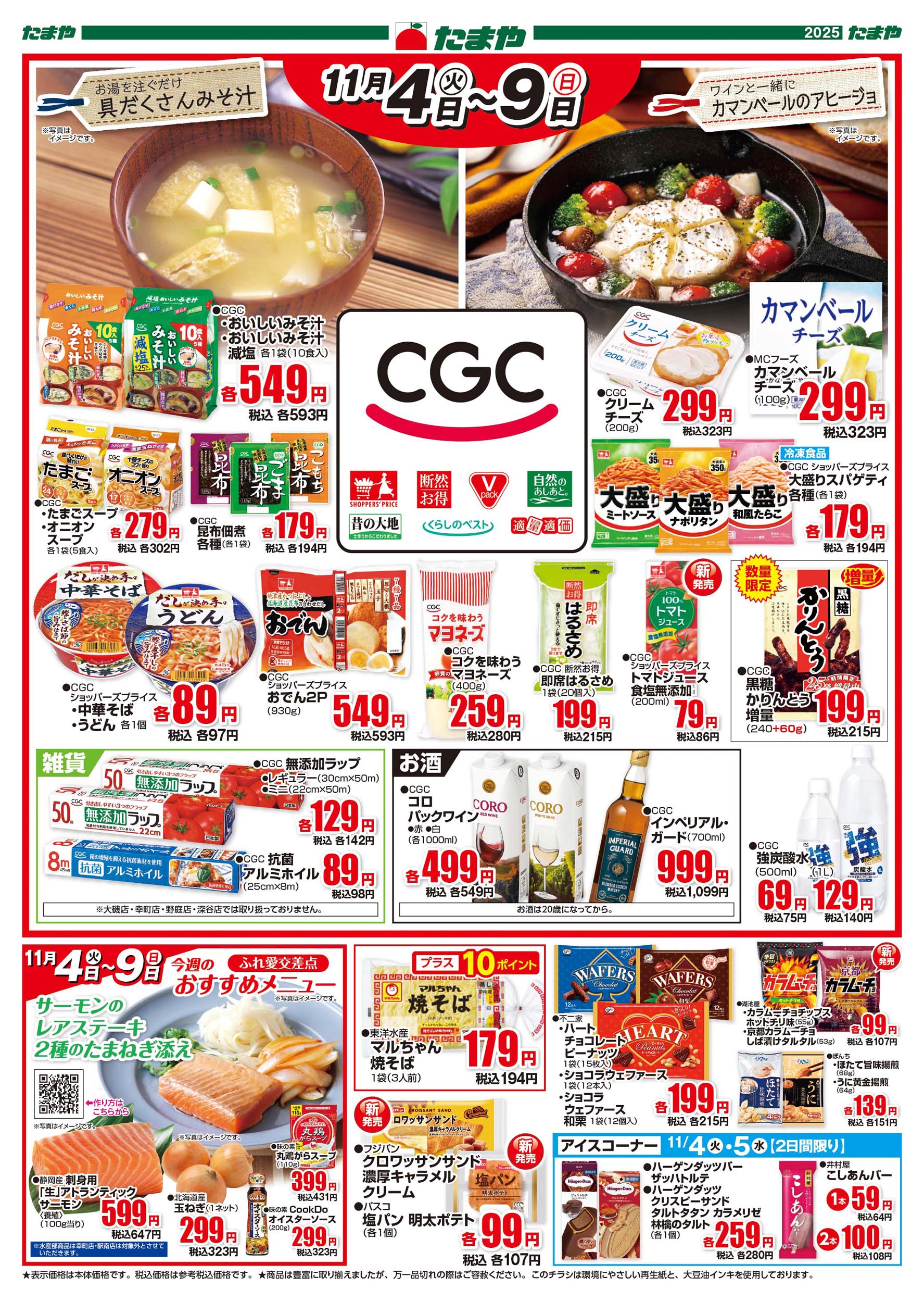 茅ヶ崎市 スーパーたまや 幸町店 生鮮食品、お惣菜、お酒、生活用品、豊富な品揃え。地域一番店となるべくサービス、価格に常に挑戦しております。 ネットチラシ クチコミを見る・投稿する ネットチラシ 広告有効期限:2025.11.04~2025.11.09 その他のネットチラシ 周辺のチラシを見る 周辺情報 グルメ ショッピング 車・バイク 住宅 暮らし 趣味・レジャー 美容・健康 周辺情報はありません このお店のTOPページへ 0467-85-5590 twitter Facebook Google+