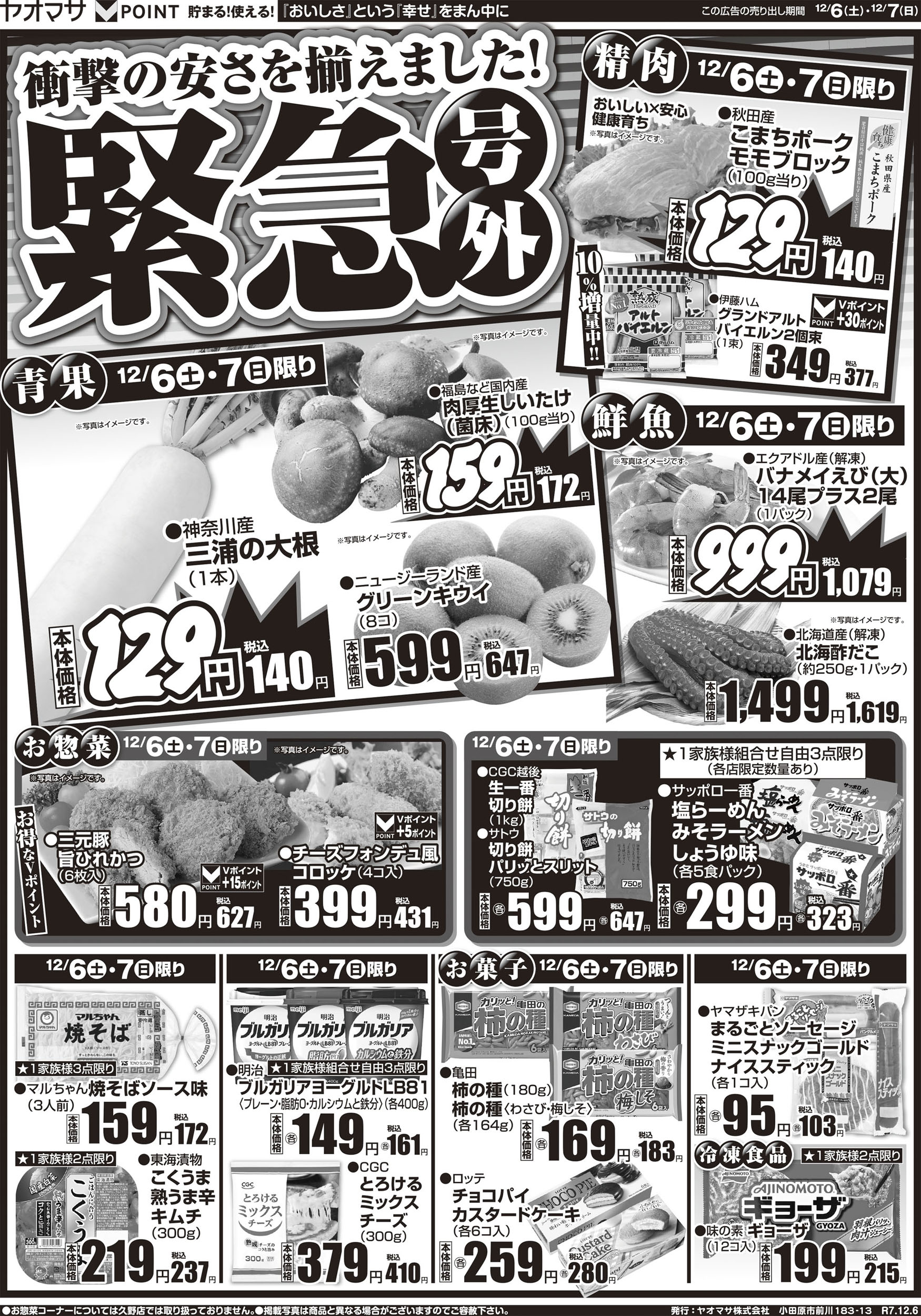 小田原市 ヤオマサ蛍田店 ヤオマサグループは、地域社会に密着し食文化を中心とした豊かな楽しい生活を地域の皆さまに提供します!お得で嬉しいイベントも満載!! ネットチラシ クチコミを見る・投稿する ネットチラシ 広告有効期限:2025.12.06~2025.12.09 その他のネットチラシ 広告有効期限 2025/12/03~2025/12/07 周辺のチラシを見る 周辺情報 グルメ ショッピング 車・バイク 住宅 暮らし 趣味・レジャー 美容・健康 周辺情報はありません このお店のTOPページへ 0465-37-2011 twitter Facebook Google+