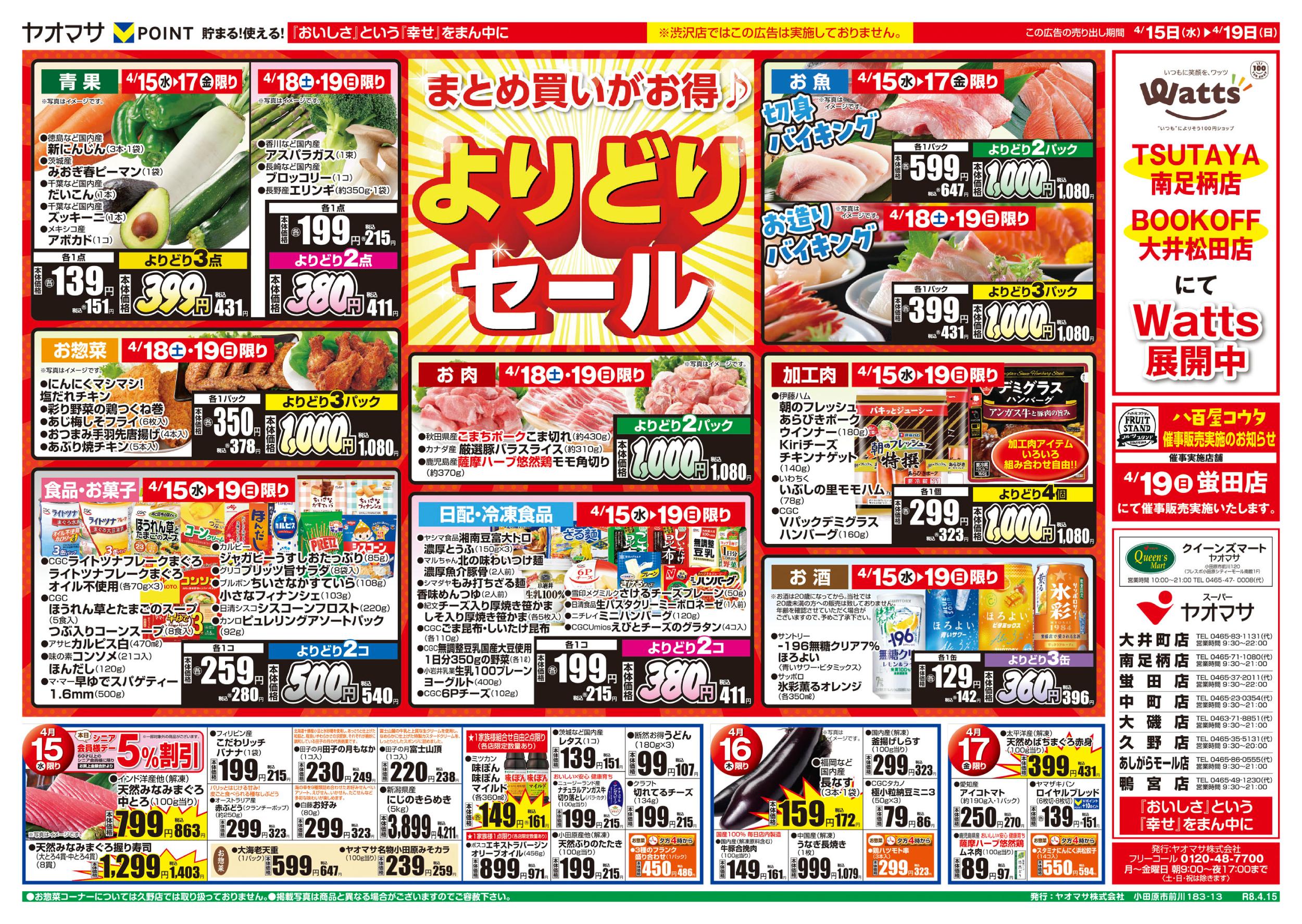 南足柄市 ヤオマサ南足柄店 ヤオマサグループは、地域社会に密着し食文化を中心とした豊かな楽しい生活を地域の皆さまに提供します!お得で嬉しいイベントも満載!! ネットチラシ クチコミを見る・投稿する ネットチラシ 広告有効期限:2026.04.15~2026.04.21 その他のネットチラシ 周辺のチラシを見る 周辺情報 グルメ ショッピング 車・バイク 住宅 暮らし 趣味・レジャー 美容・健康 周辺情報はありません このお店のTOPページへ 0465-71-1080 twitter Facebook Google+